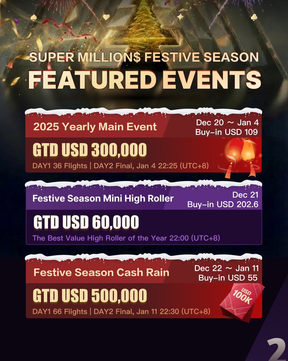 Mùa lễ hội SIÊU TRIỆU ĐÔ LA đã chính thức bắt đầu, tràn ngập không khí lễ hội và tổng giải thưởng đảm bảo hơn 3.000.000 USD tại các sự kiện lớn nhất năm của chúng tôi.