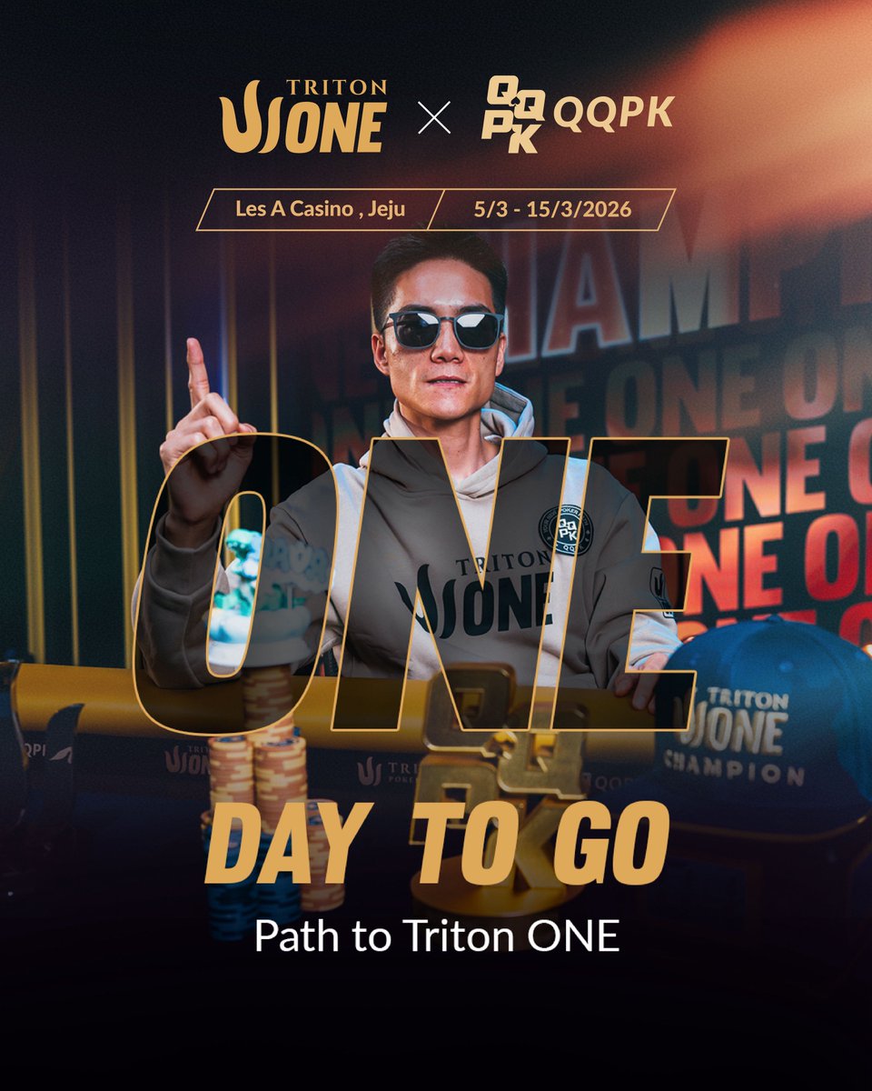 🔱 Ngày mai, Triton ONE bắt đầu. Jeju. Gió thổi trên những tảng đá núi lửa. Sự tĩnh lặng trước cơn bão. Giới tinh hoa của thế giới trở lại bàn chơi. Là nhà tài trợ chính, QQPK chiếm vị trí trung tâm của sân khấu. Khi lá bài đầu tiên được chia, vinh quang bắt đầu. 🔱 7 ngày nữa đến Triton ONE. GIỜ ĐÂY BẠN CÓ THỂ XEM TRỰC TIẾP TRITON ONE — TRÊN QQPK 🎥🔴