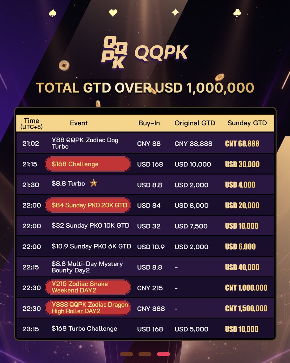 Tất cả các sự kiện yêu thích của bạn đều trở lại — Turbos, PKOs, Mystery Bounty, High Rollers — nhưng với GTD siêu khủng, đạt đến một cấp độ mới.
