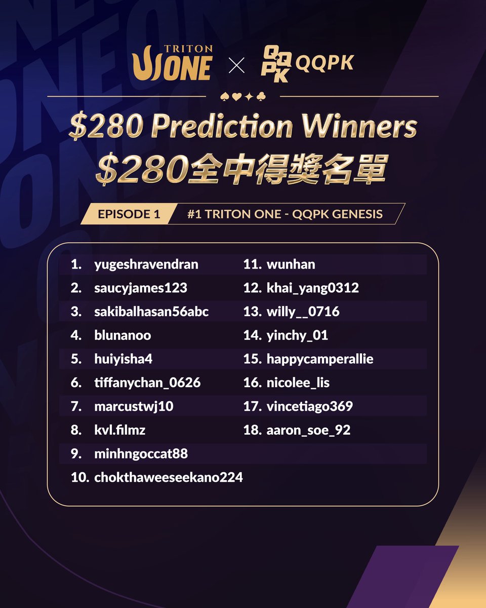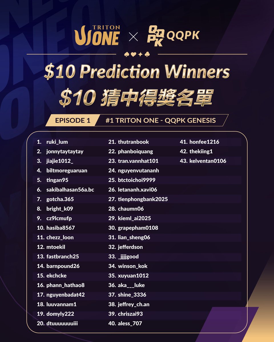 Chúc mừng tất cả những người chiến thắng đã dự đoán chính xác tại giải đấu #1 Triton ONE – QQPK Genesis FT 🎉