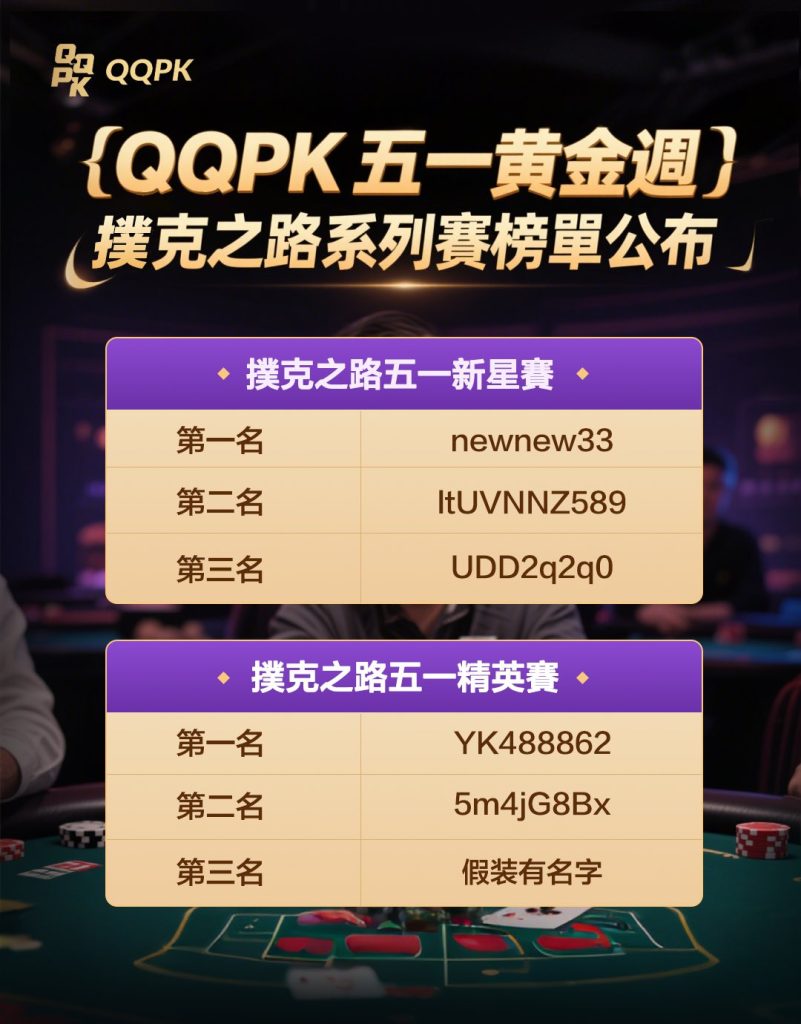 Danh sách xếp hạng QQPK May Day Golden Week Poker Road Series chính thức được công bố!