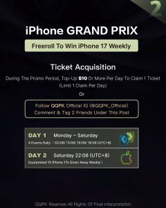 Nhận 15 chiếc iPhone 17 mỗi tuần — miễn phí! Nhận 15 chiếc iPhone 17 mỗi tuần — miễn phí! Tham gia vòng loại hàng ngày từ Thứ Hai đến Thứ Bảy và tranh tài tại Chung kết Hàng tuần. Đăng ký kết thúc lúc 19:00 mỗi Thứ Bảy. Nhận Vé Vào Cửa Miễn Phí bằng cách nạp 10 đô la mỗi ngày 【Cách nhận vé】 Cạnh tranh !